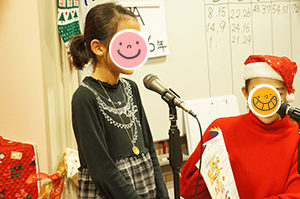 英語での自己紹介、スキット、絵本の朗読、長文の暗唱など、個々のレベルに合わせて日頃のレッスンの成果を披露します。